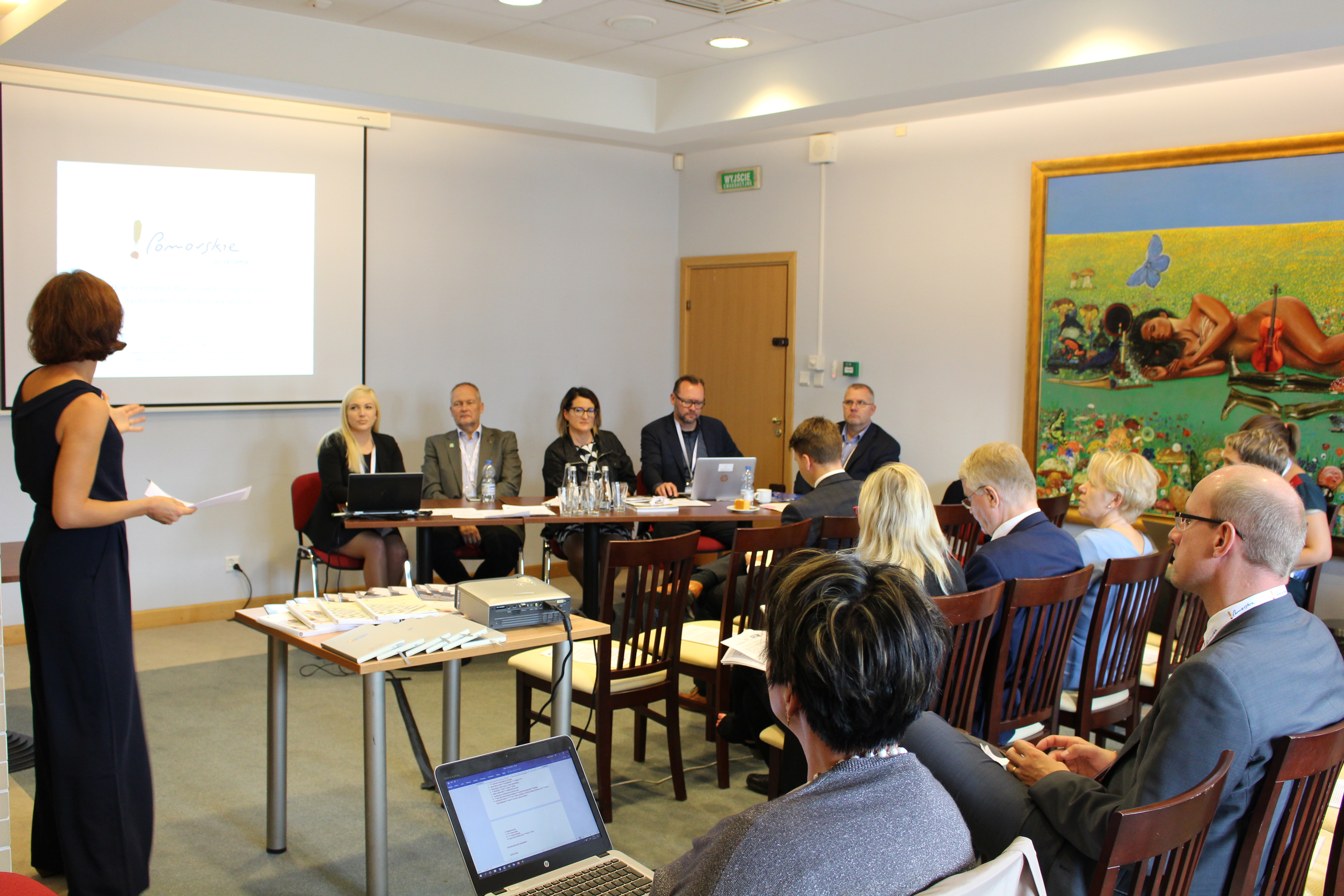 The speakers presented three projects. Magda Leszczyna-Rzucidło (Pomorskie in the EU) and Karolina Lipińska ( Deputy Director of the Department of Economic Development, Office of the Marshal of the Pomorskie Voivodship) presented the project Smart Blue Regions (Interreg BSR) which focuses on enhancing Blue Growth co-operation based on regional RIS3. They introduced the project preliminary results and lessons learned from the transnational workshops on maritime skills development, offshore wind energy, marine tourism and cluster cooperation, where various stakeholders identified over 30 possible cross-border project topics.